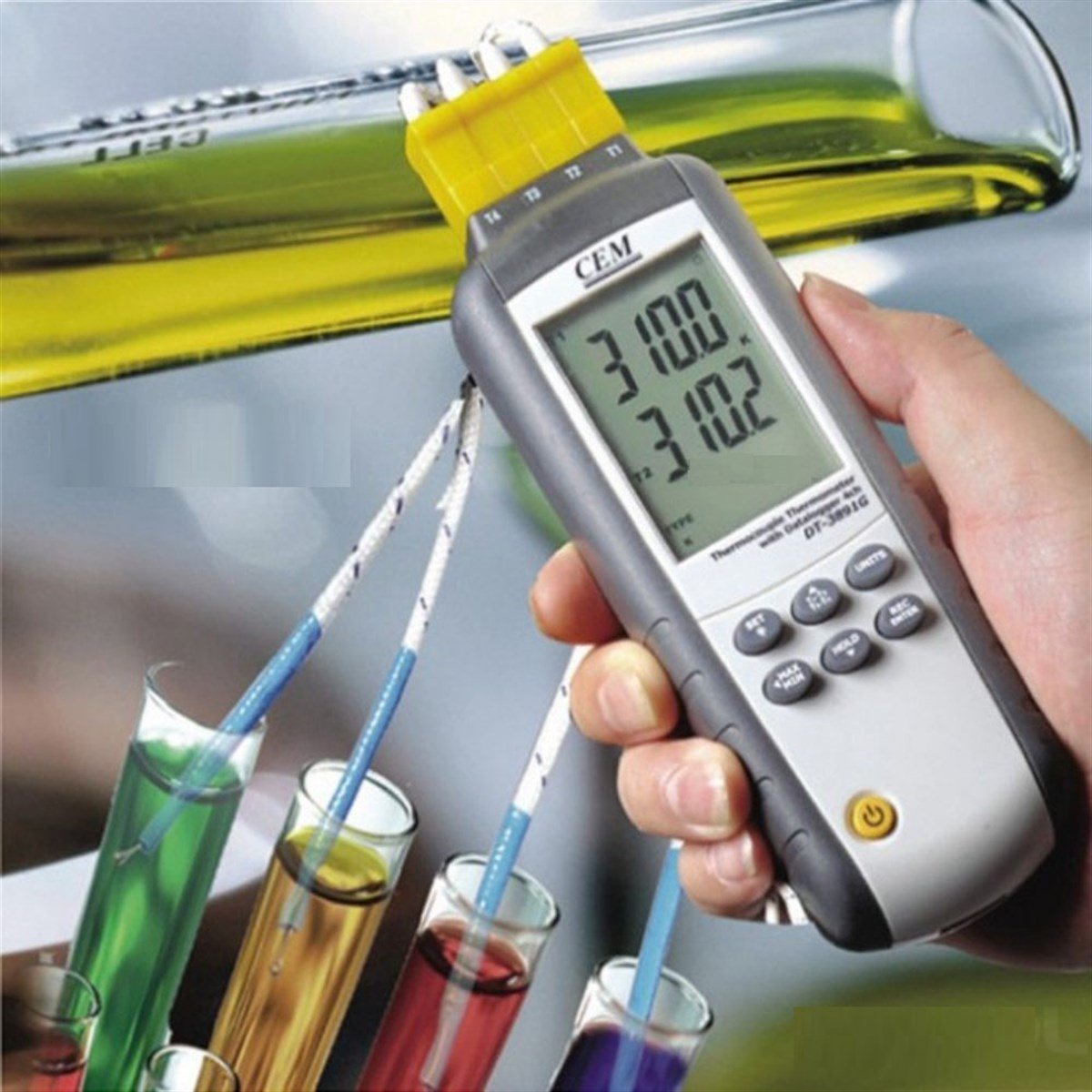 CEM DT 3891G SICAKLIK KAYIT CİHAZI ÖZELLİKLERİ - Hem K tipi, hem de J tipi termokupl lar ile çalışabilmektedir. - ºC, ºF ve Kelvin birimleri ile ölçüm yapabilmektedir. - Cihazın ekranı; T1, T2, T1-T2, T3, T4, T3-T4 bilgilerini ekranından rahatlıkla takip edebilirsiniz. - Kanal başına 18.000 adet veri kaydı yapabilmektedir. - Cihazın arka aydınlatmalı dijital ekranı bulunmaktadır. Bu özellik; ekranı göremediğiniz karanlık ortamlarda işinizi çok kolaylaştıracaktır. - 4 adet K tipi termokupl prob; ürünle birlikte tarafınıza kutu içerisinde gelmektedir. - Bu 4 probla 4 farklı yerin sıcaklık değerlerini kayıt altına alabilirsiniz. - Cihazın yanında 4 adet K tipi probu, 1 adet USB kablosu, yazılım CD'si bulunmaktadır. - Cihazın yanında gelen CD'den bilgisayarınıza arayüz programını kurabilirsiniz. - Otomatik kapanma fonksiyonu bulunmaktadır. - Cihazın yanında gelenler; 4 adet K tipi probu, Yazılım CD'si, USB ara kablosu