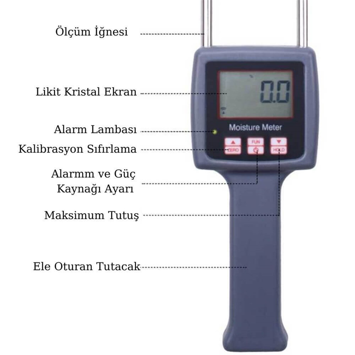 Tahıl samanı balyası nemini %10 ila %50 aralığında ölçer