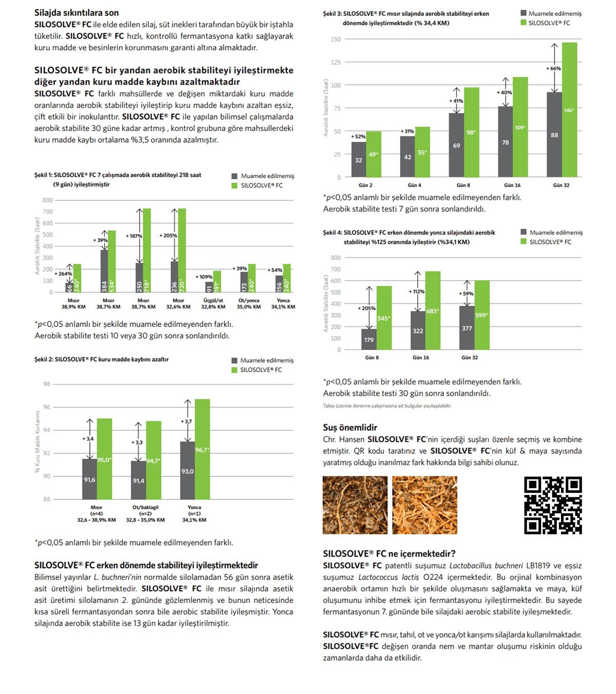 SILOSOLVE ® FC, sürekli olarak süt inekleri tarafından tercih edilen silajı vermiştir. SILOSOLVE ® FC hızlı, kontrollü fermantasyonu destekler ve tarladan alınan kuru madde ve besinlerin korunmasını ve inekleriniz için kullanılabilir olmasını sağlar.